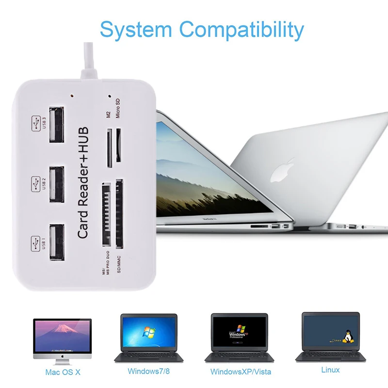 USB Hub 2.0 3 Ports TF Micro SD Card Reader Slot USB Combo Multi All In One USB Splitter Cables For Laptop Macbook Accessories